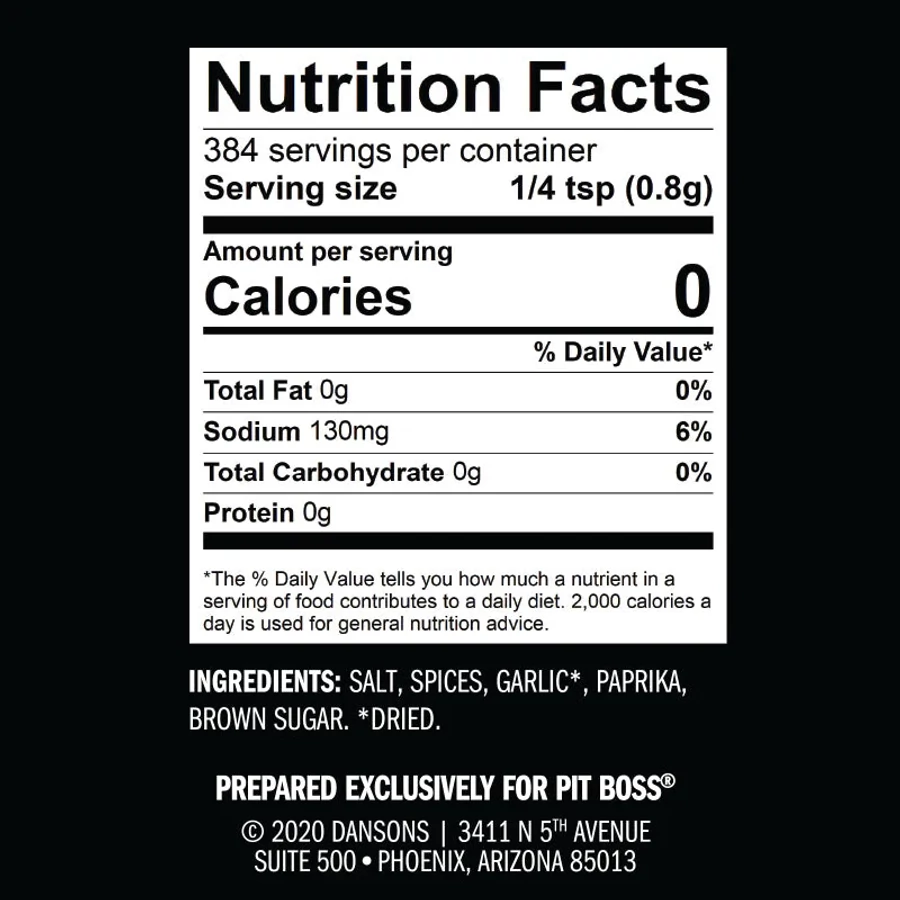 Élvezze Texas hagyományos ínycsiklandó ízét a Pit Boss Lone Star Brisket Rub segítségével. Az édes, enyhe és füstös íz tökéletes keverékével ez a dörzsölés az igazi szegy szerelmeseinek készült. Használja bőségesen száraz dörzsölésként vagy pácként kedvenc marhahús receptjeihez, például szegyhez vagy marhabordához. A fokhagyma, a barna cukor, a paprika és a bors fűszerek ízletesek sertésfenéken, füstölt csirkeszárnyon, steak kabobon és még sok máson.